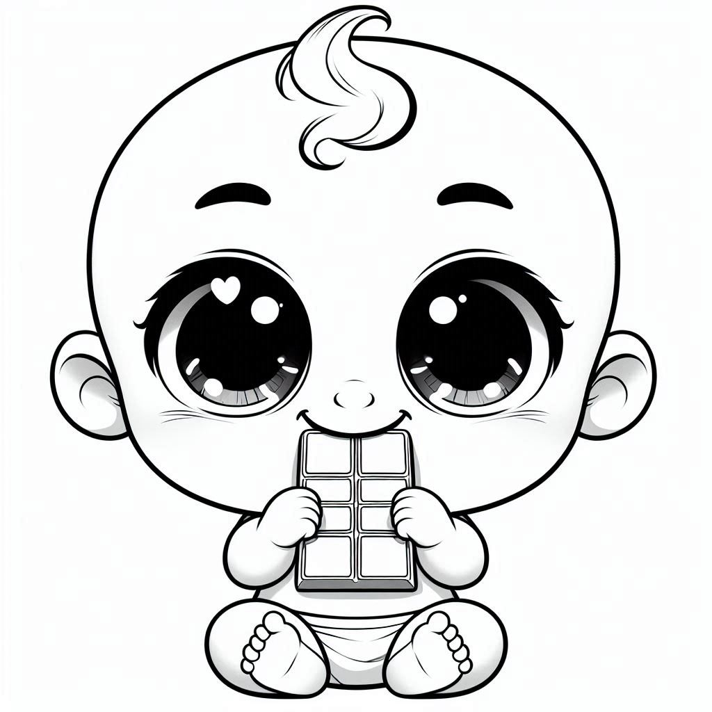 דף צביעה של תינוק אוכל שוקולד להדפסה או להורדה בחינם, למחשב או לטלפון (אפשר להדפיס גם מהטלפון)