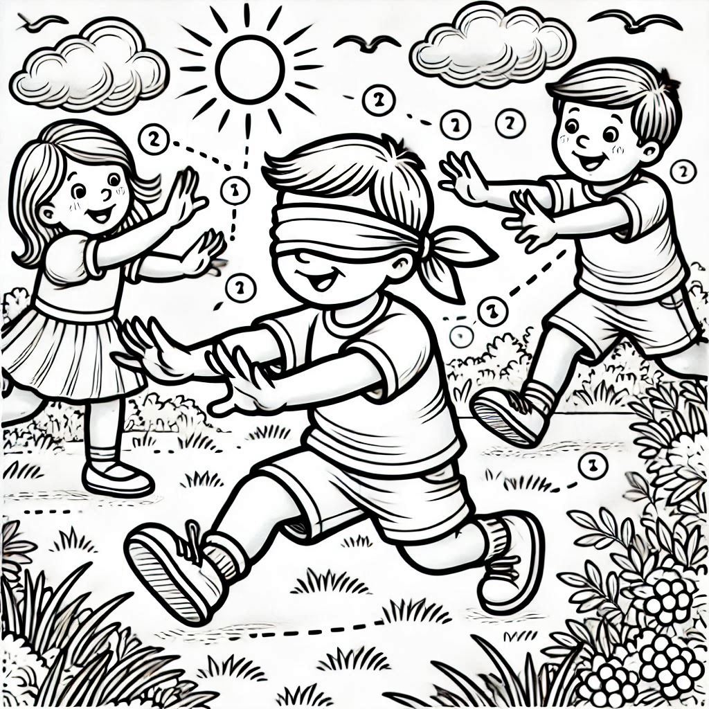 דף צביעה להדפסה או להורדה חינם של ילדים משחקים תופסת