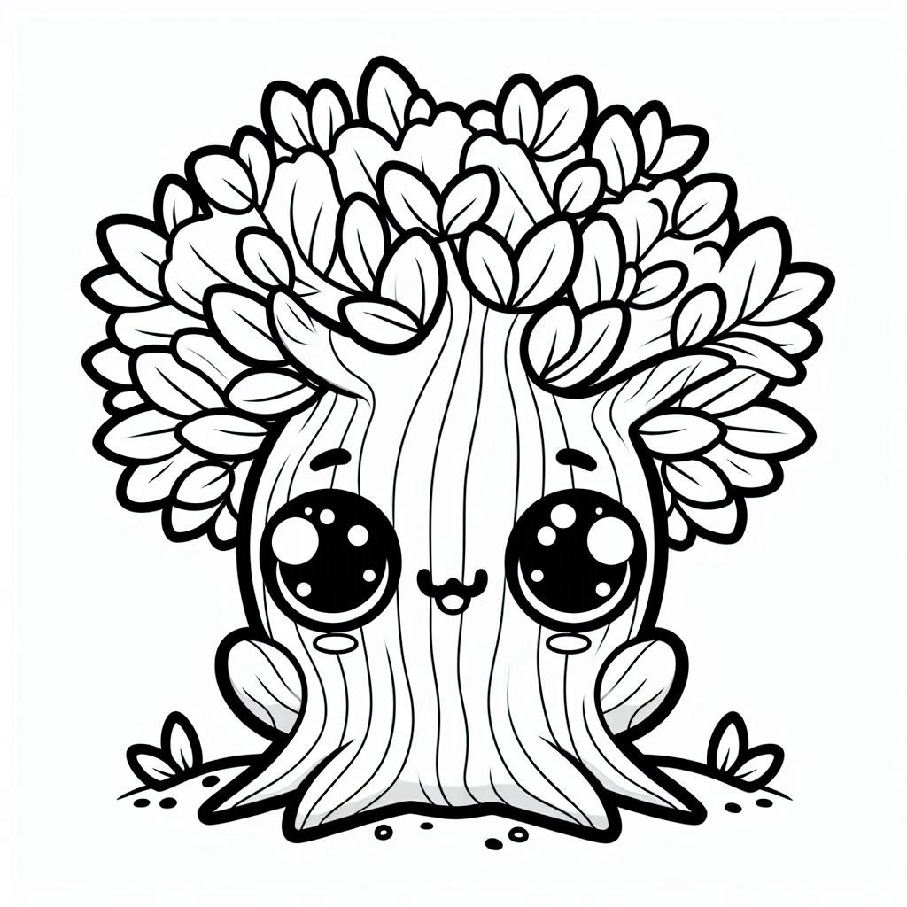 דף צביעה תמונה של עץ חמוד עם עיניים גדולות לצביעה בחינם להדפסה או צביעה אונליין