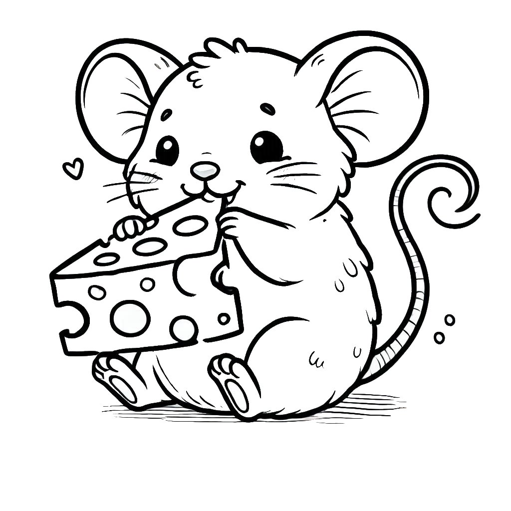 דף צביעה תמונה של עכבר אוכל גבינה לצביעה בחינם להדפסה או צביעה אונליין