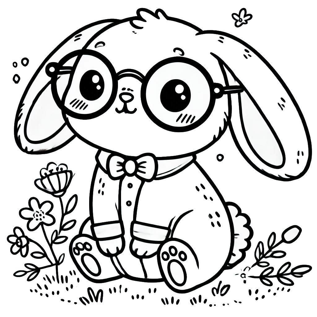 דף צביעה להדפסה או להורדה חינם של ארנב עם משקפיים