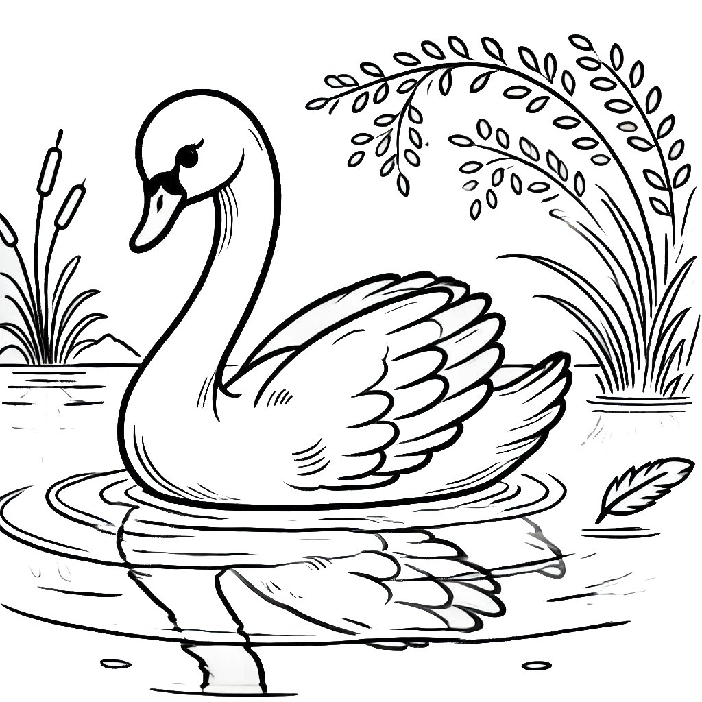ציור של ברבור באגם לצביעה, איור של ברבור באגם להדפסה לצביעה לילדים