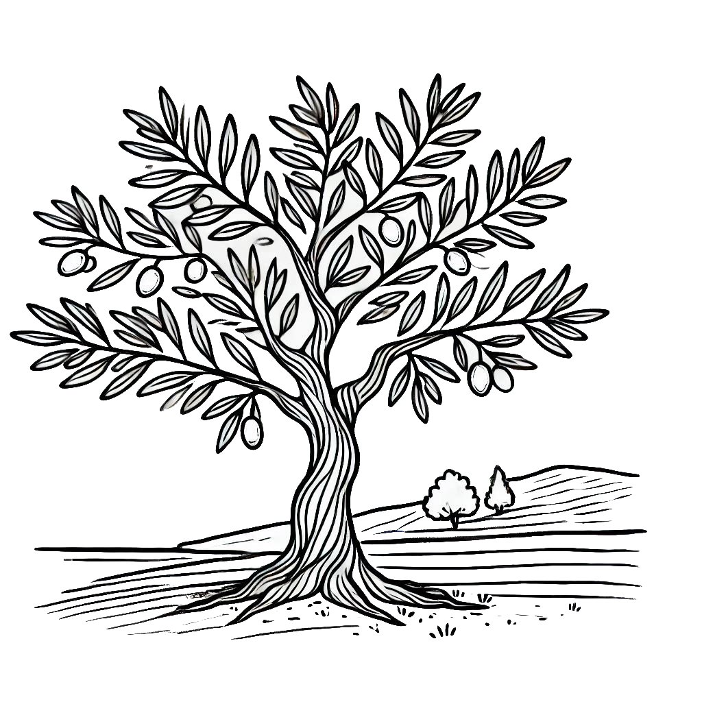 ציור של עץ זית לצביעה, איור של עץ זית להדפסה לצביעה לילדים