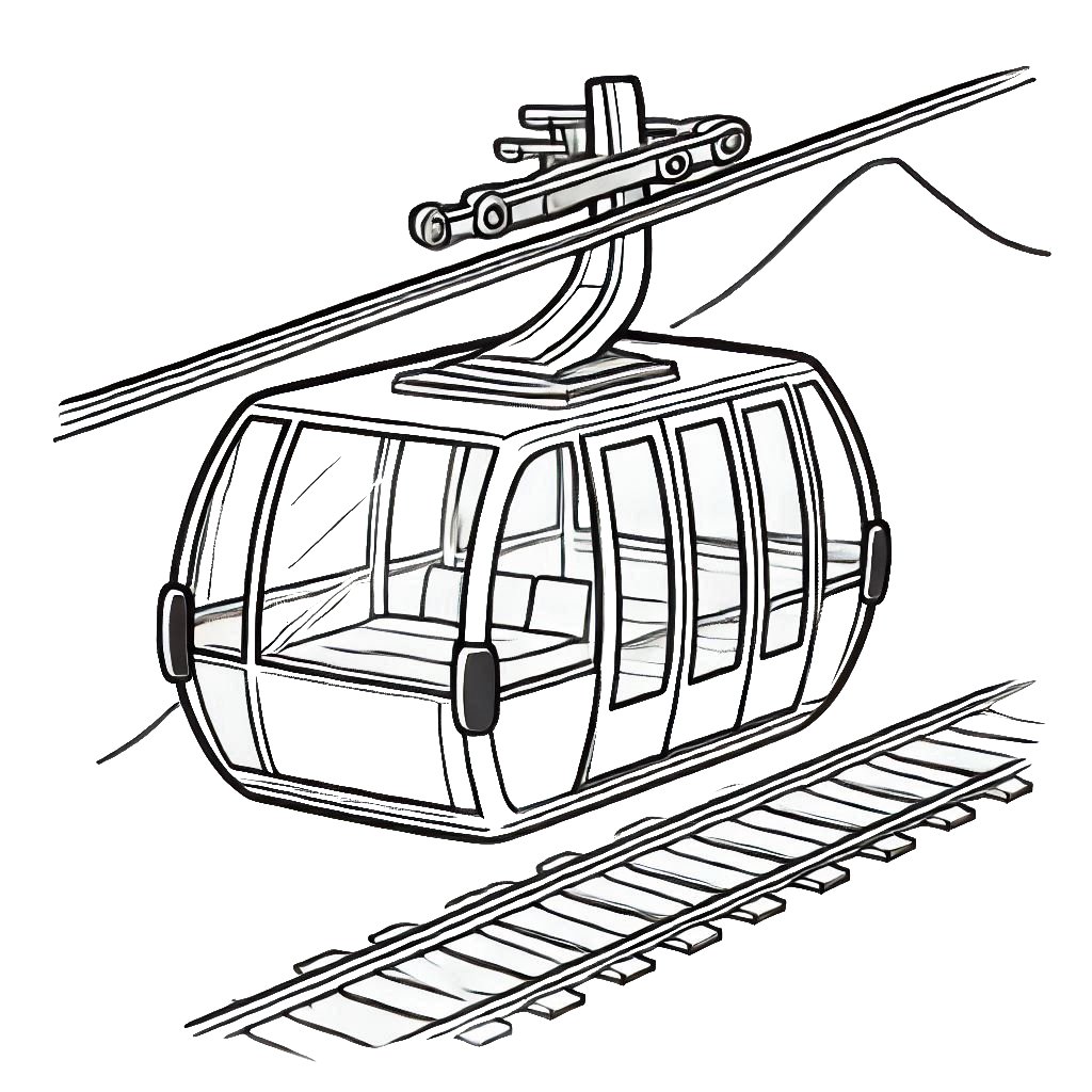 דף צביעה של רכבל - דף צביעה של רכבל להדפסה, ציור של רכבל לצביעה בחינם
