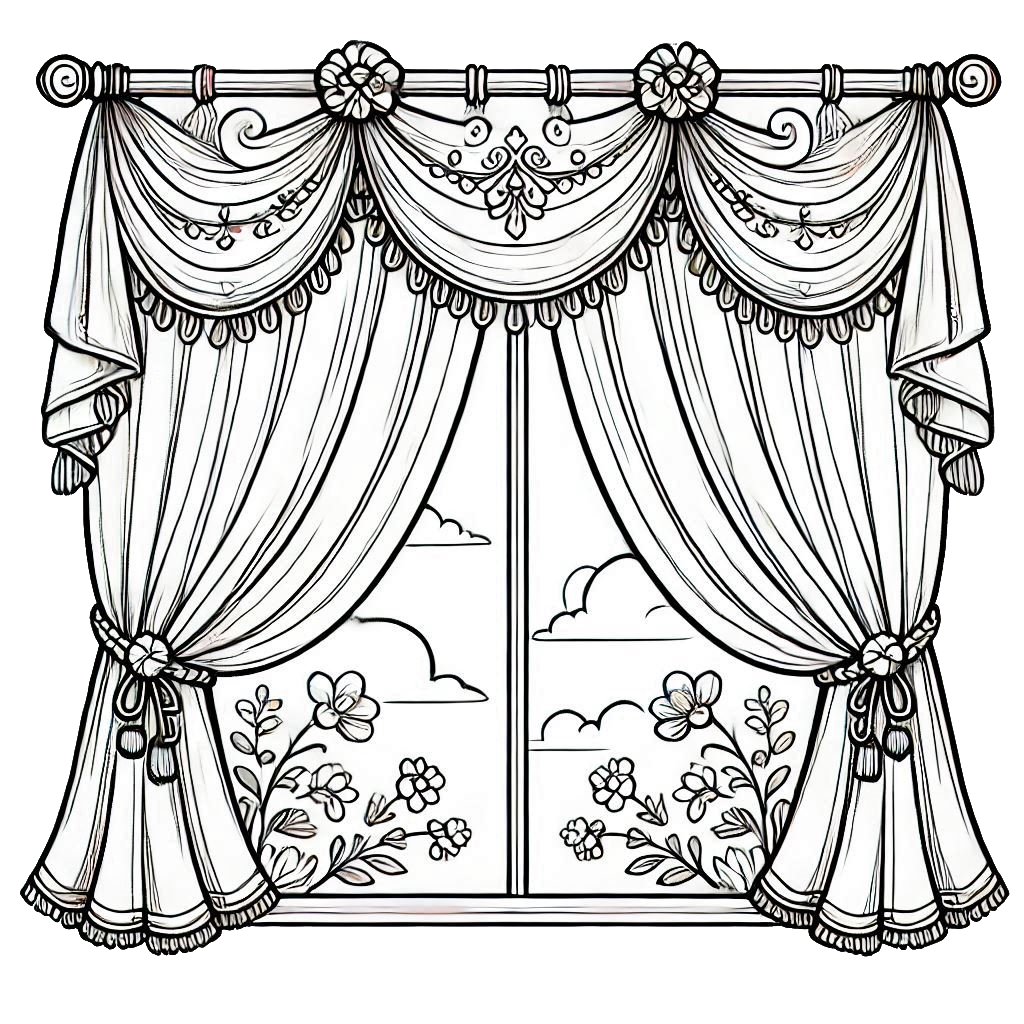 דף צביעה של וילון להדפסה או להורדה בחינם, למחשב או לטלפון (אפשר להדפיס גם מהטלפון) ציור של וילון לצביעה, איור של וילון להדפסה לצביעה לילדים