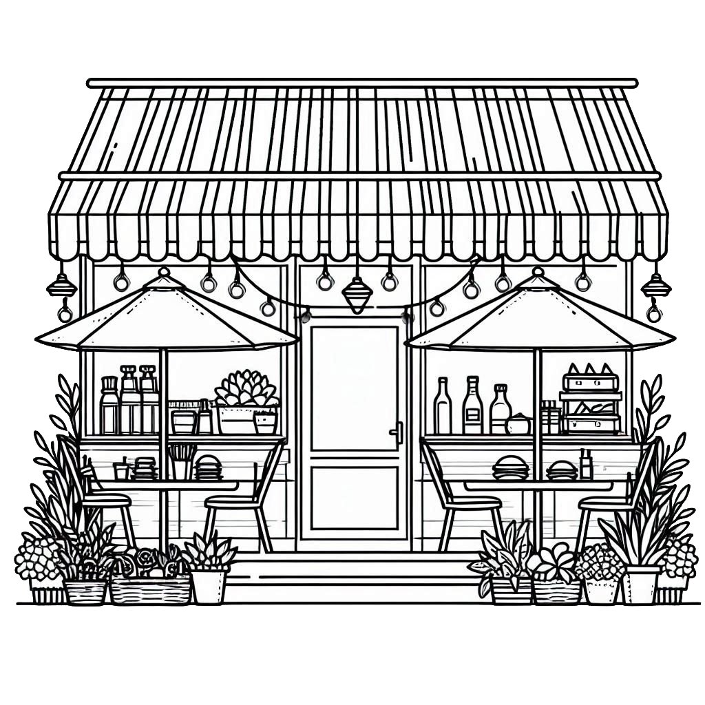דף צביעה של מסעדה - דף צביעה של מסעדה להדפסה, ציור של מסעדה לצביעה בחינם