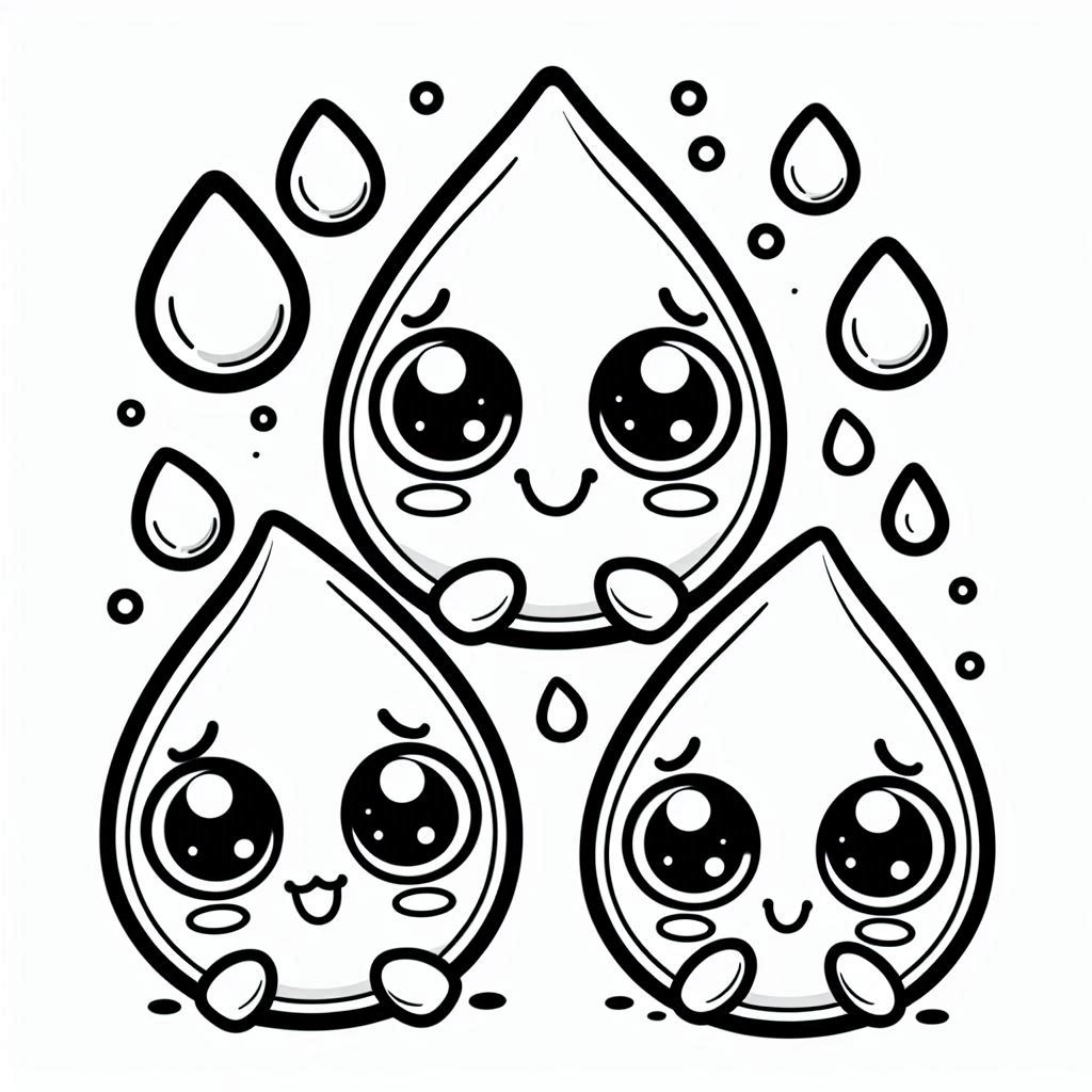 טיפות גשם חמודות לצביעה - דף צביעה של טיפות גשם חמודות להדפסה, ציור של טיפות גשם חמודות לצביעה בחינם