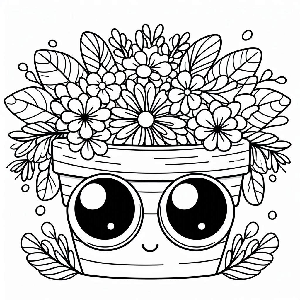 דף צביעה של עציץ חמוד עם פרחים להדפסה בחינם