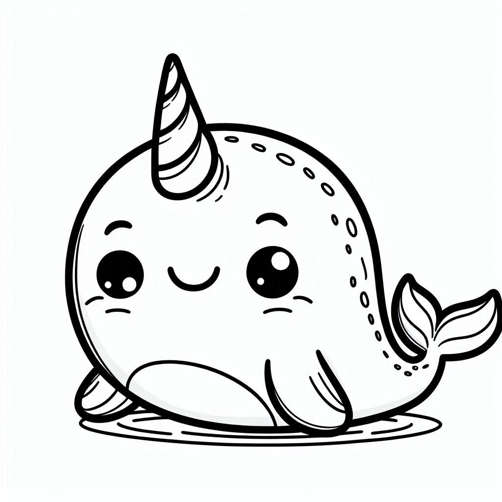 דף צביעה להדפסה או להורדה חינם של לוויתן חד קרן נרוואל