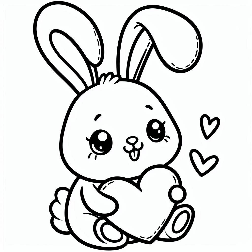 ציור של ארנב עם לב לצביעה, איור של ארנב עם לב להדפסה לצביעה לילדים