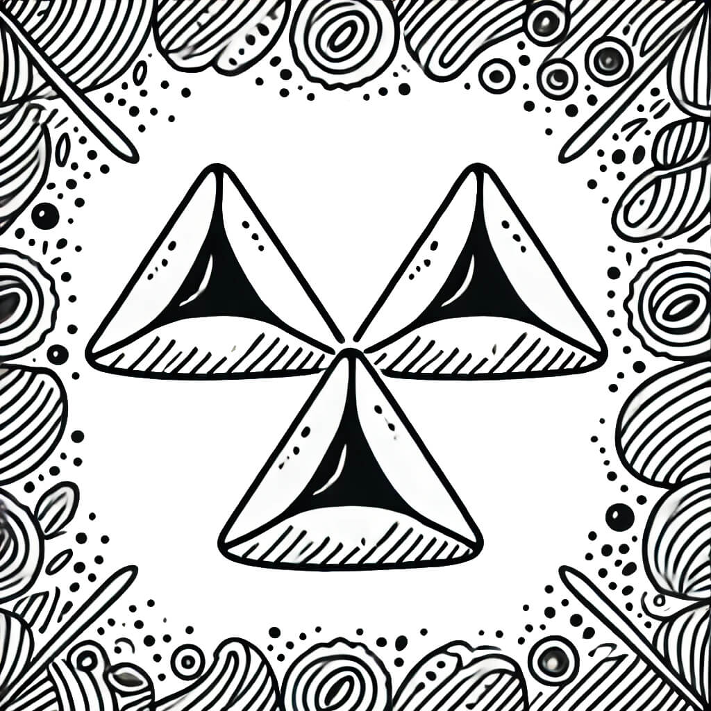תמונה של אוזני המן בשחור לבן להדפסה בחינם. דף עבודה לצביעה של אוזני המן להורדה או שמירה במחשב.