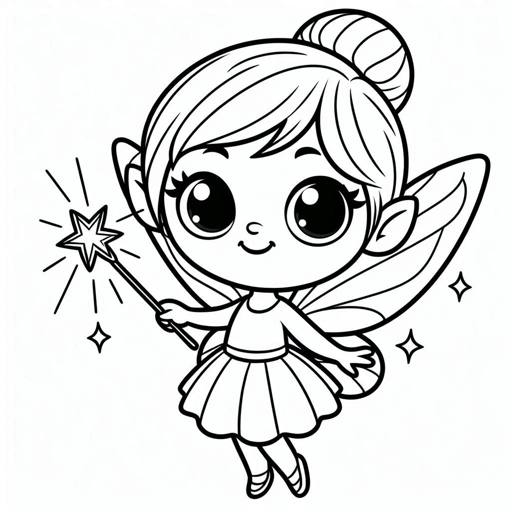 ציור של טינקרבל עם שרביט לצביעה, איור של טינקרבל עם שרביט להדפסה לצביעה לילדים