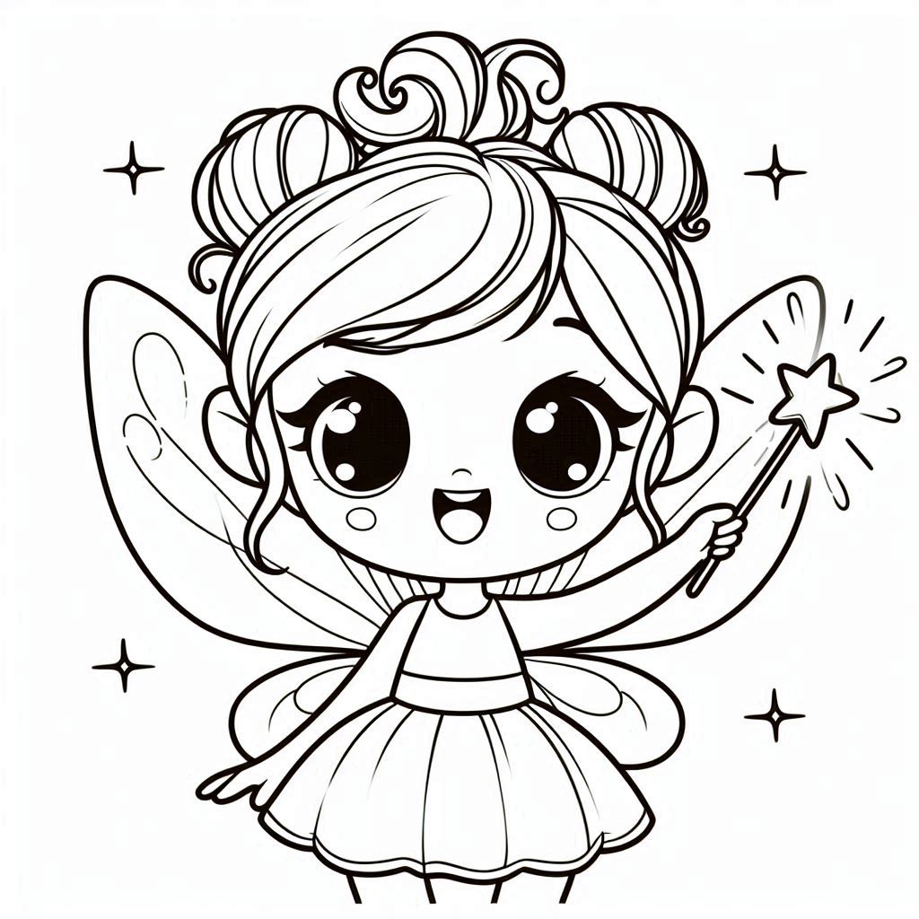 ציור של פיה עם שרביט לצביעה, איור של פיה עם שרביט להדפסה לצביעה לילדים