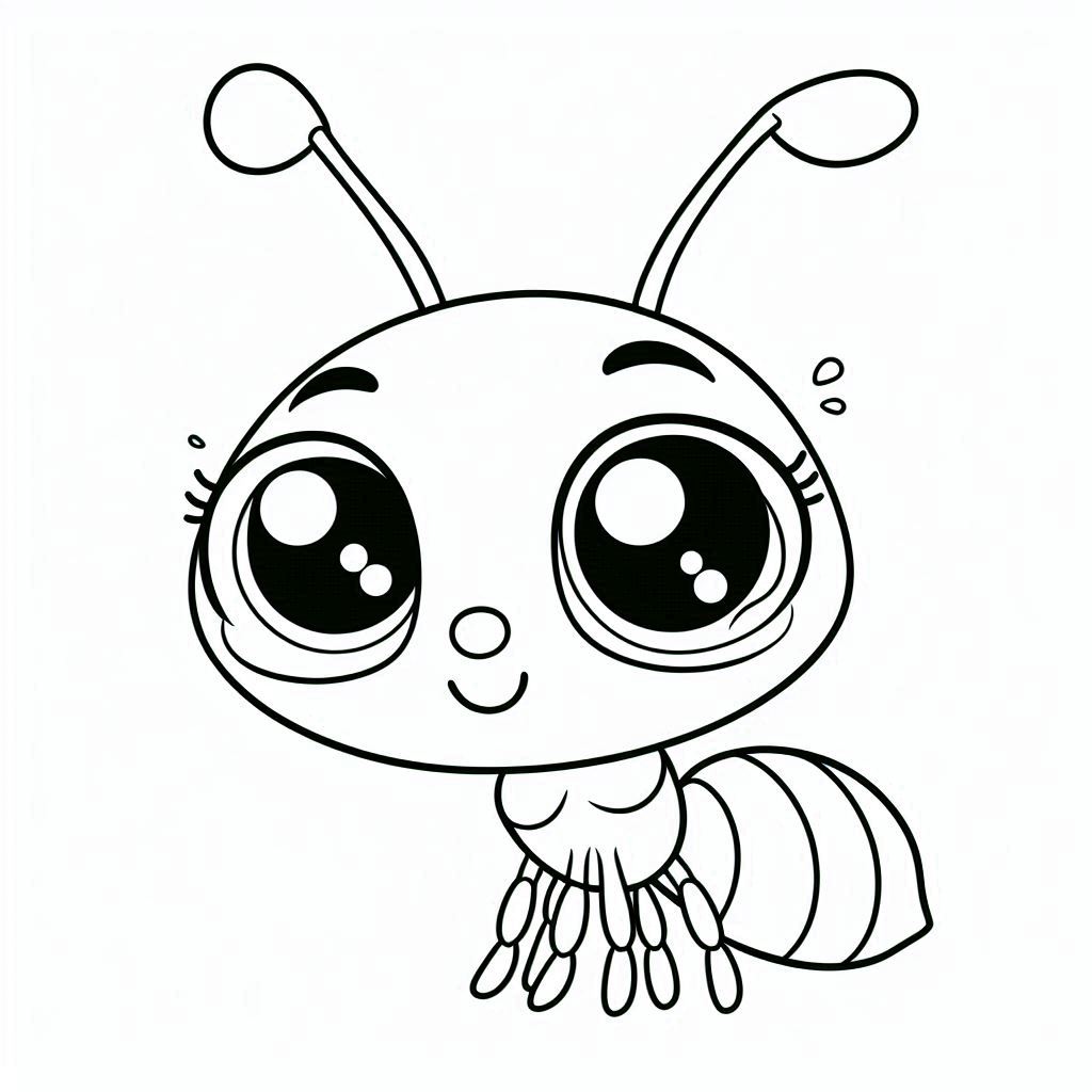 ציור של נמלה חמודה לצביעה, איור של נמלה חמודה להדפסה לצביעה לילדים