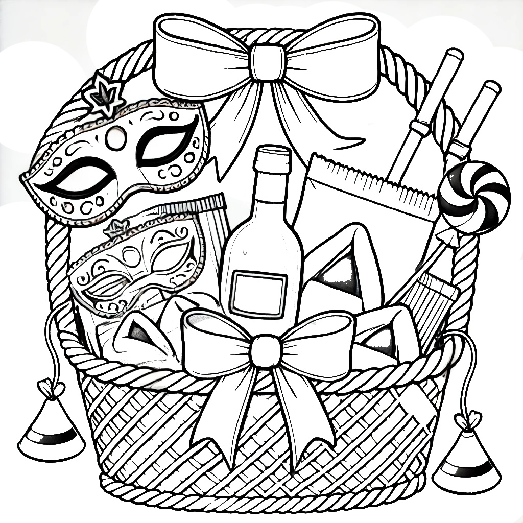 ציור של משלוח מנות לפורים לצביעה, איור של משלוח מנות לפורים להדפסה לצביעה לילדים