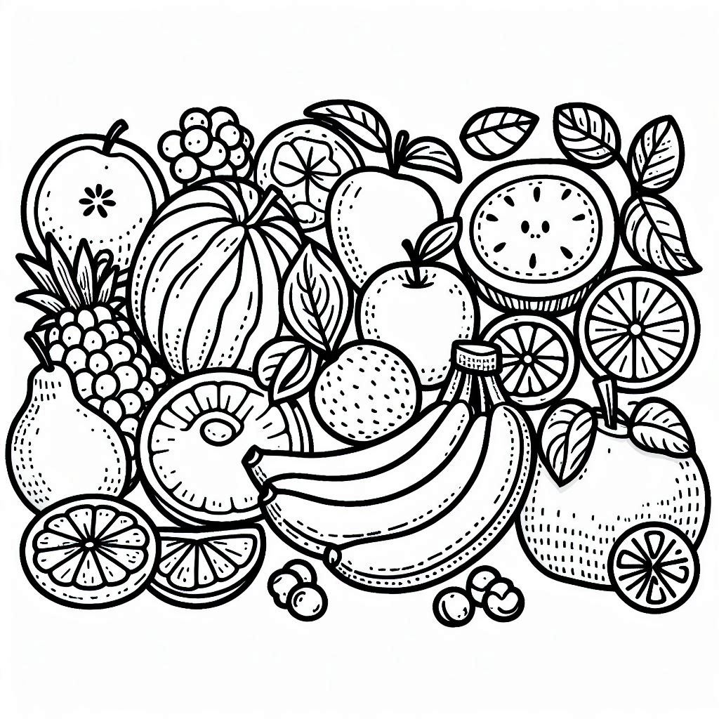 דף צביעה תמונה של פירות של קיץ לצביעה בחינם להדפסה או צביעה אונליין