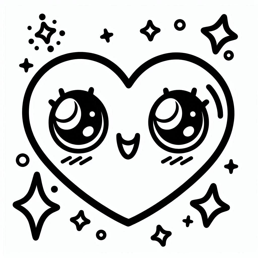 דף צביעה של צורה של לב חמוד להדפסה בחינם