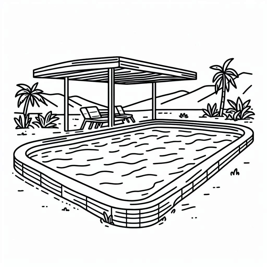 תמונה של בריכה בשחור לבן להדפסה בחינם. דף עבודה לצביעה של בריכה להורדה או שמירה במחשב.