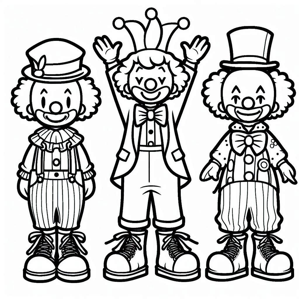 ציור של ליצנים לצביעה, איור של ליצנים להדפסה לצביעה לילדים