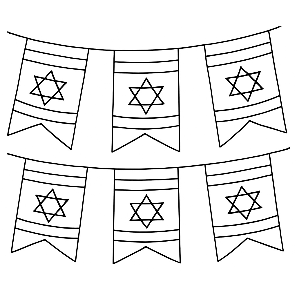 ציור של שרשרת דגלי ישראל לצביעה, איור של שרשרת דגלי ישראל להדפסה לצביעה לילדים