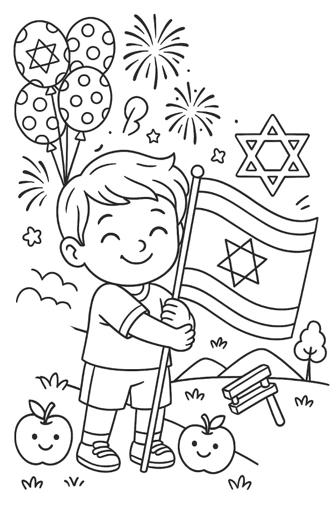 דף מסיבת עצמאות לצביעה , מסיבת עצמאות להדפסה לצביעה, מתאים לדף בגודל A4 להדפסה בחינם
