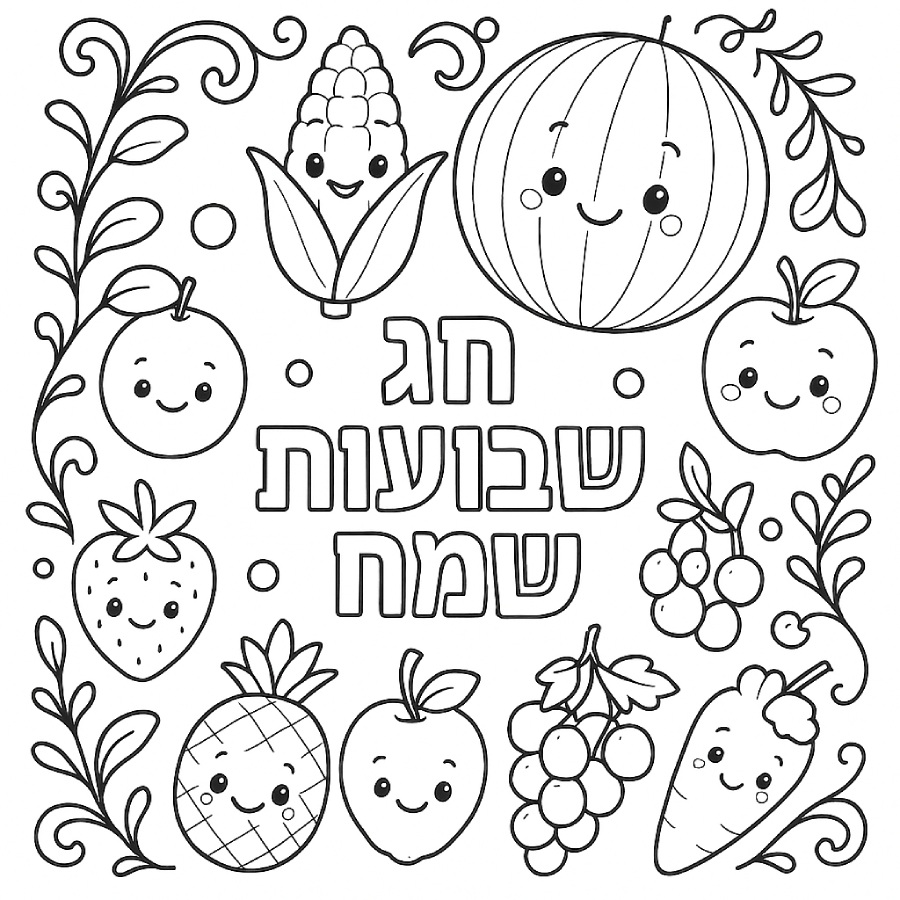 דף צביעה של חג שבועות שמח להדפסה או להורדה בחינם, למחשב או לטלפון (אפשר להדפיס גם מהטלפון)