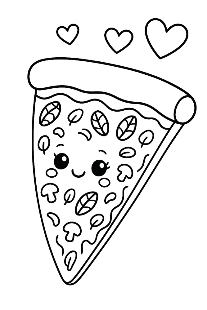 ציור של פיצה חמודה לצביעה, איור של פיצה חמודה להדפסה לצביעה לילדים