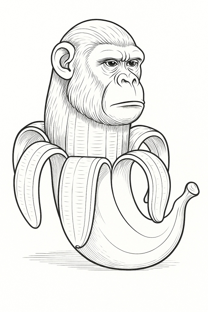 תמונה של שימפנזיני בנניני בשחור לבן להדפסה בחינם. דף עבודה לצביעה של שימפנזיני בנניני להורדה או שמירה במחשב.