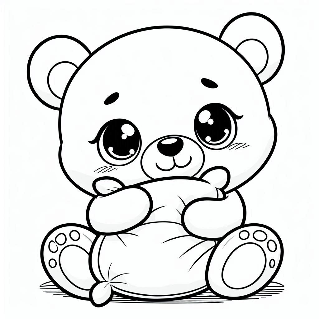 ציור של דובי מחבק כרית לצביעה, איור של דובי מחבק כרית להדפסה לצביעה לילדים