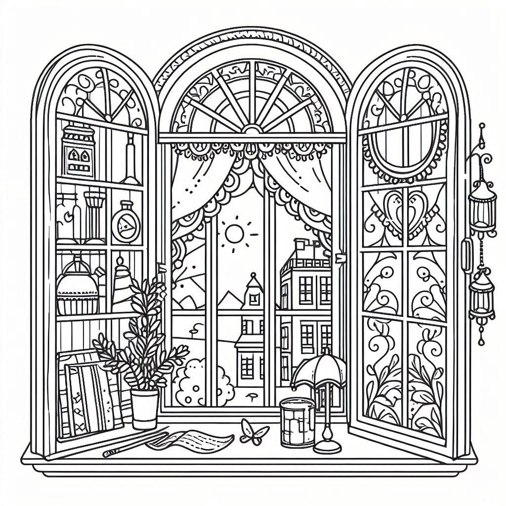 דף צביעה של חלונות - דף צביעה של חלונות להדפסה, ציור של חלונות לצביעה בחינם