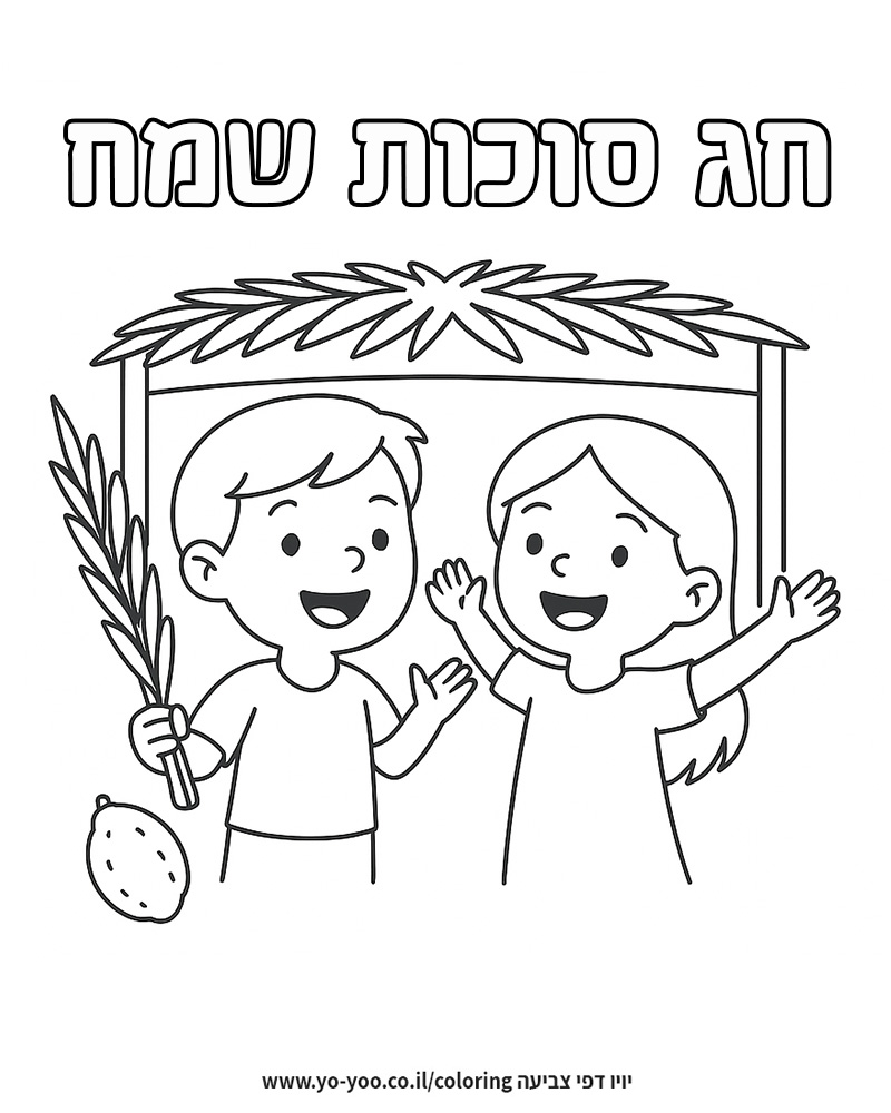 ילדים משחקים בסוכות - דף צביעה של ילדים משחקים בסוכות להדפסה, ציור של ילדים משחקים בסוכות לצביעה בחינם. דף צביעה להדפסה או להורדה בחינם ! כנסו והתחילו לצבוע !