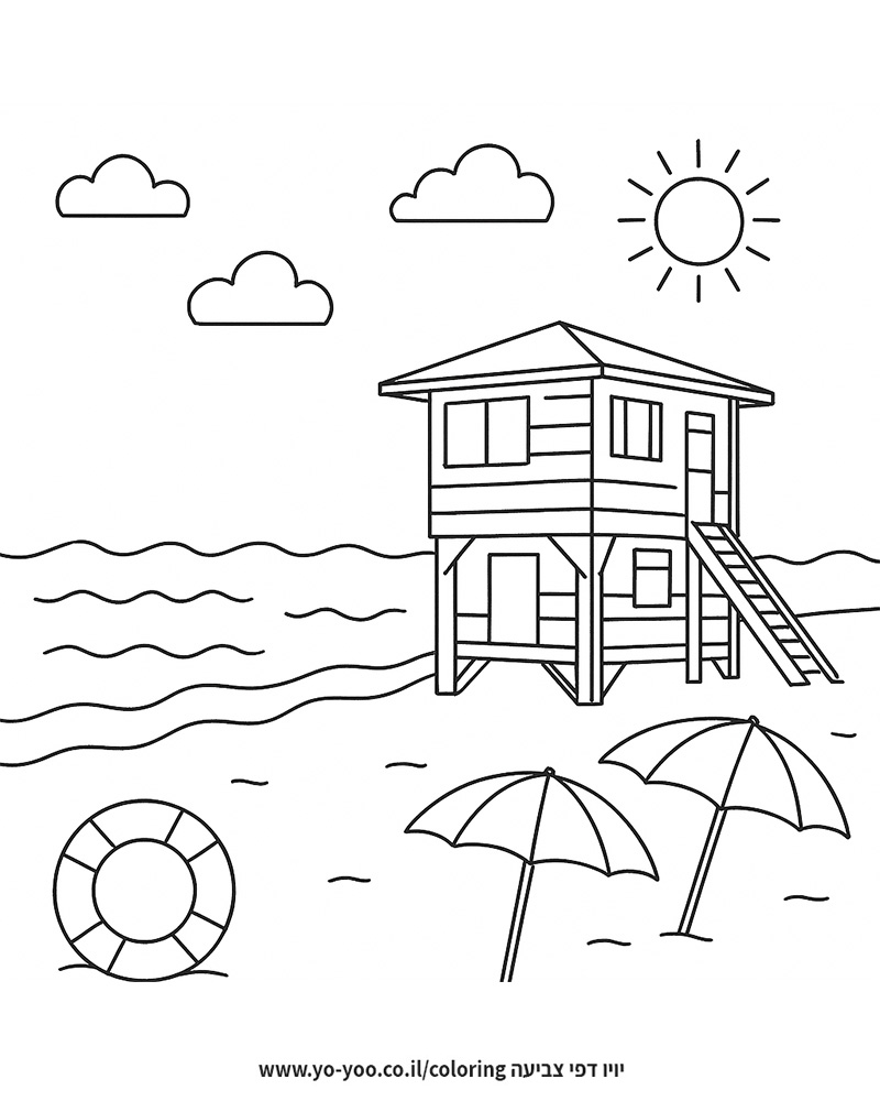 דף צביעה של חוף ים להדפסה או להורדה בחינם, למחשב או לטלפון (אפשר להדפיס גם מהטלפון)