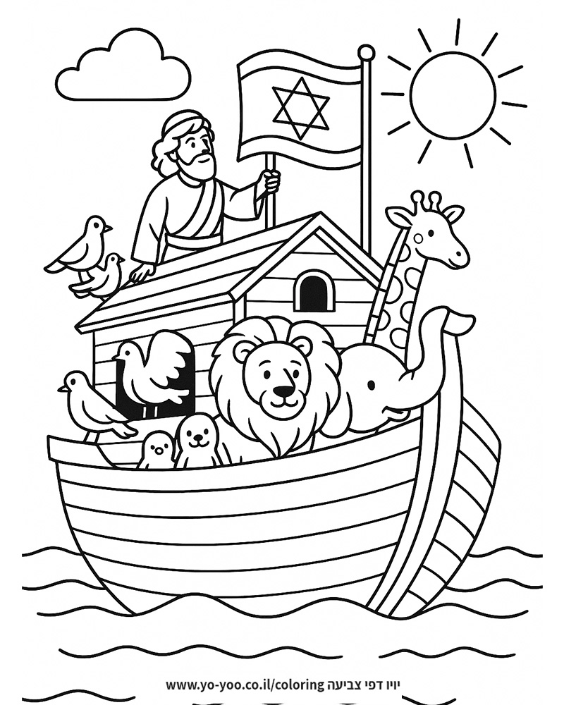 דף צביעה של תיבת נוח שטה להדפסה או להורדה בחינם, למחשב או לטלפון (אפשר להדפיס גם מהטלפון)