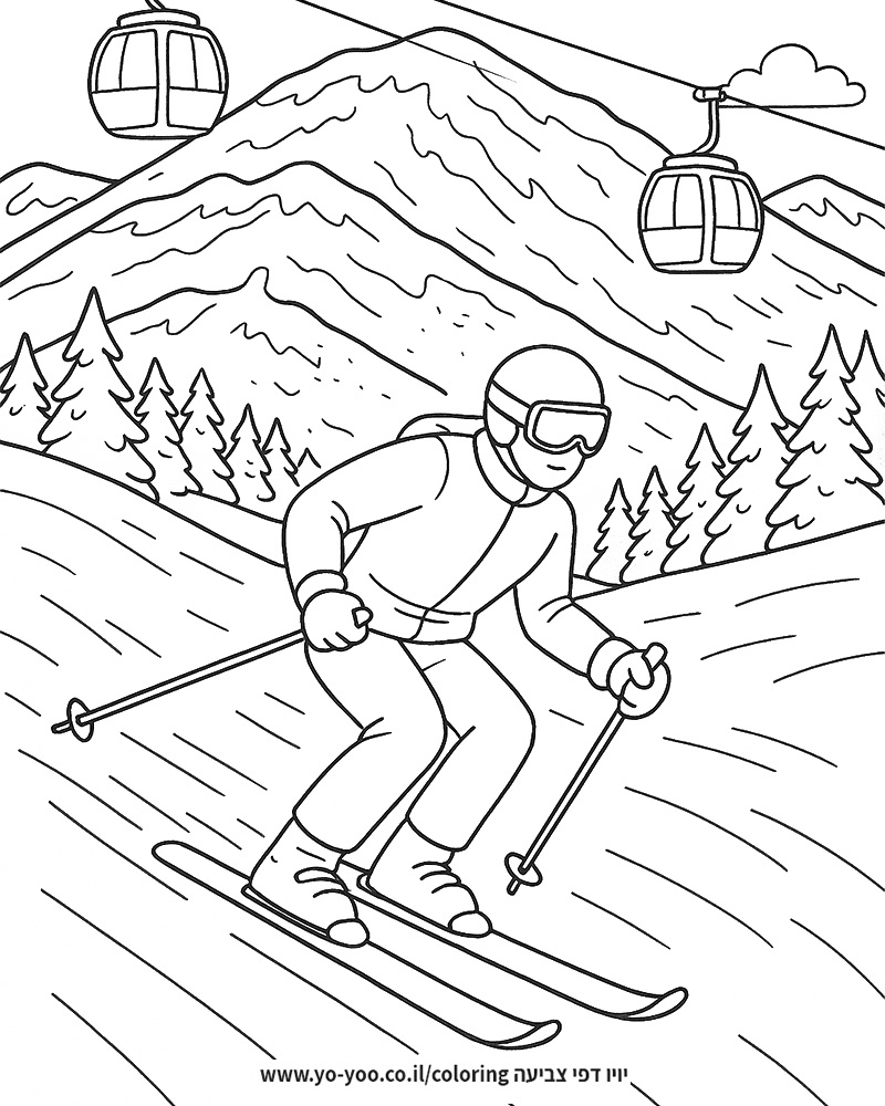 דף צביעה של סקי בחרמון - דף צביעה של סקי בחרמון להדפסה, ציור של סקי בחרמון לצביעה בחינם