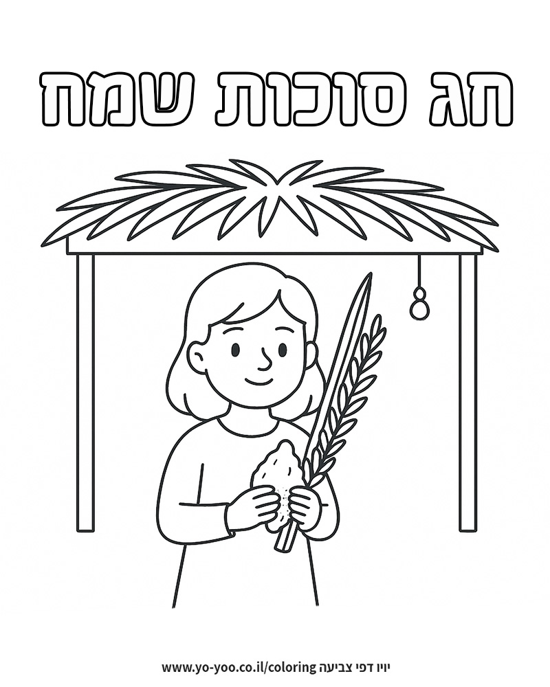 דף צביעה של חג סוכות שמח להדפסה בחינם