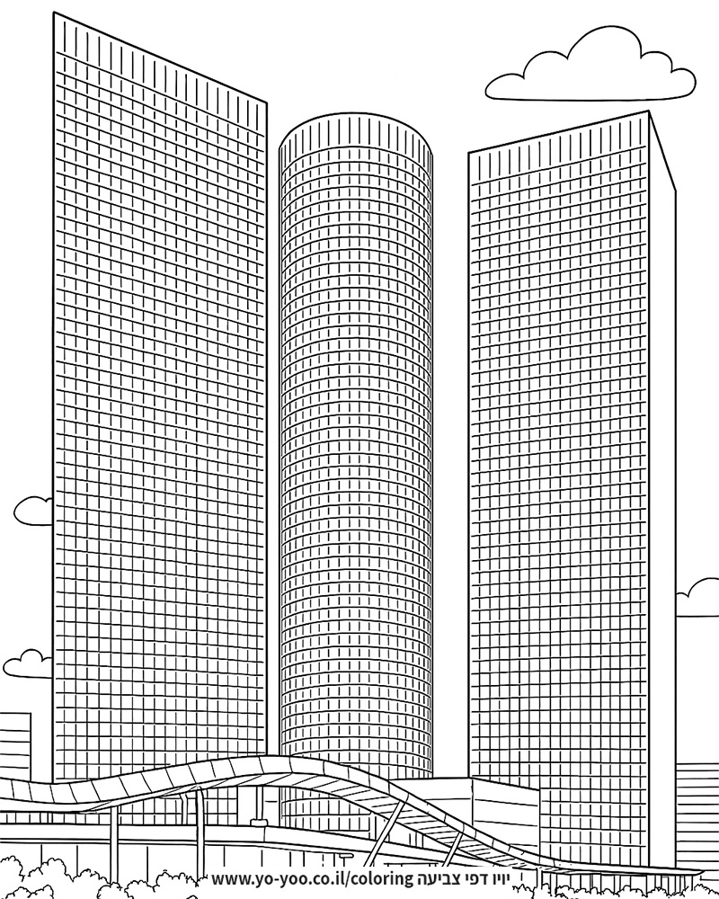 דף צביעה של מגדלי עזריאלי להדפסה בחינם