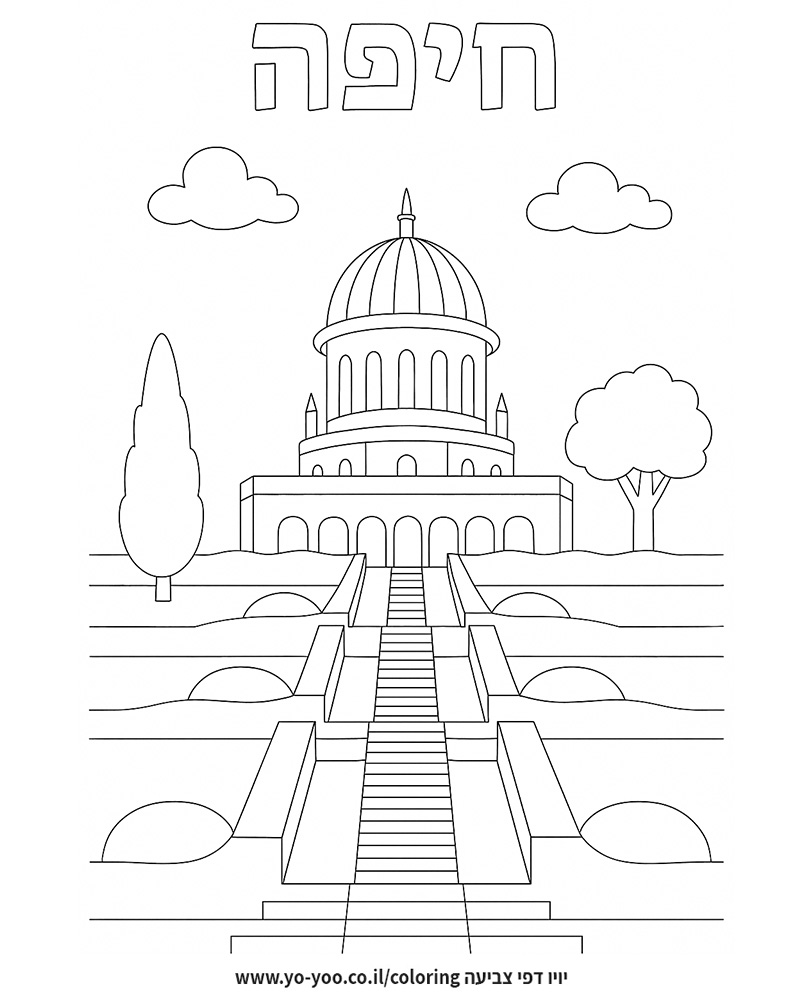 דף צביעה של הגנים הבהאיים להדפסה או להורדה בחינם, למחשב או לטלפון (אפשר להדפיס גם מהטלפון) ציור של הגנים הבהאיים לצביעה, איור של הגנים הבהאיים להדפסה לצביעה לילדים