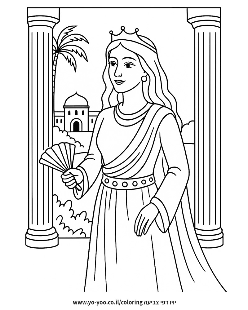 ציור של אסתר המלכה לצביעה, איור של אסתר המלכה להדפסה לצביעה לילדים
