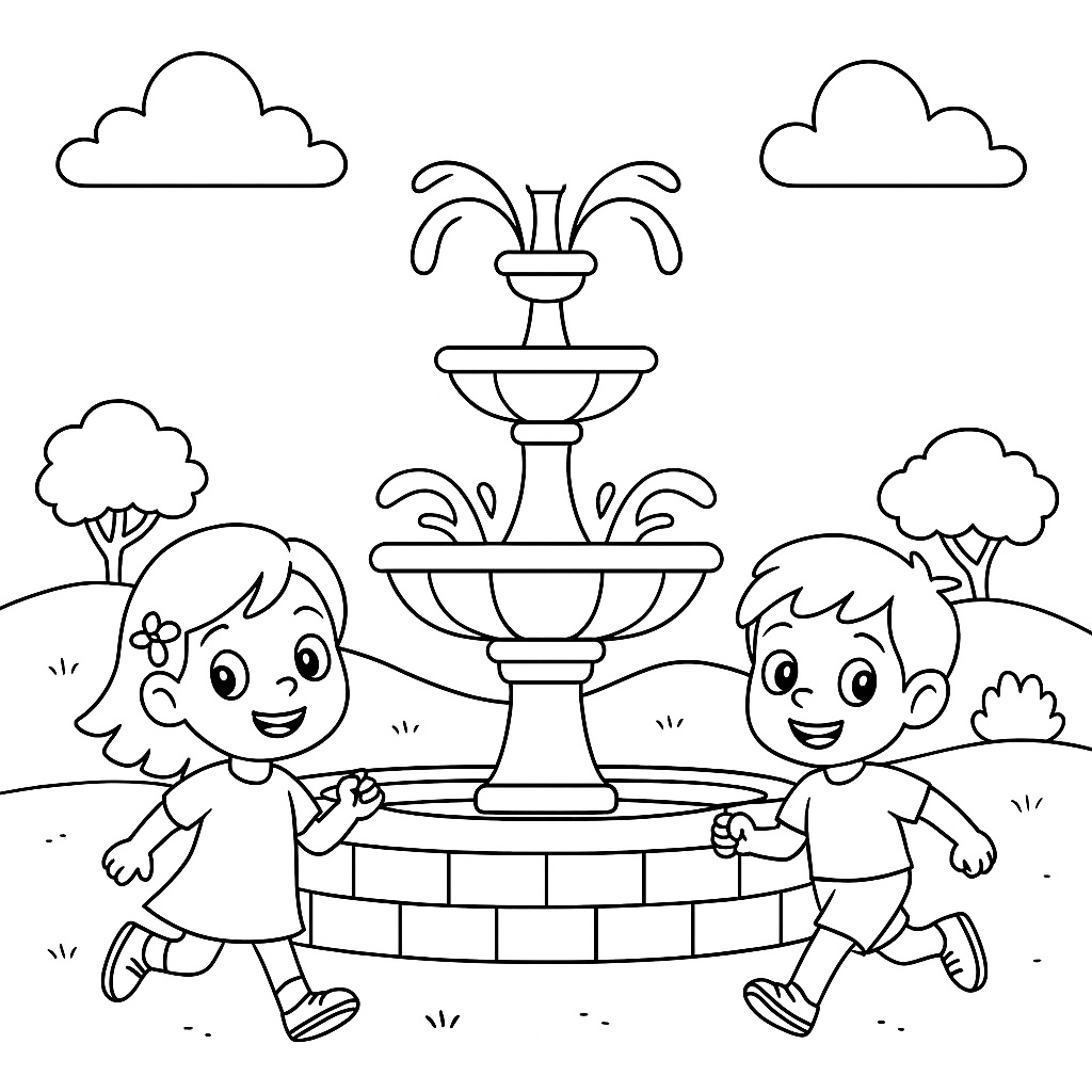 תמונה של ילדים משחקים בבאר שבע בשחור לבן להדפסה בחינם. דף עבודה לצביעה של ילדים משחקים בבאר שבע להורדה או שמירה במחשב.