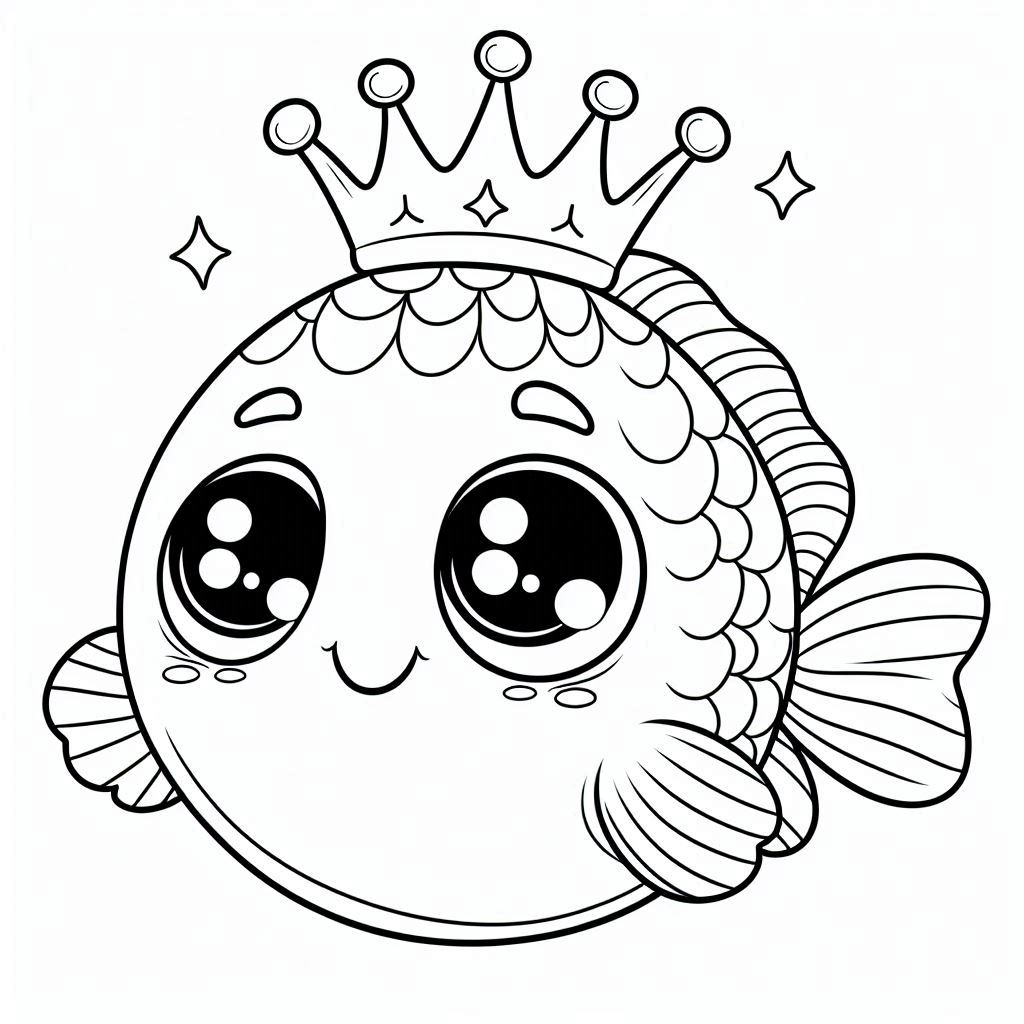 דף צביעה של דג אבו נפחא עם כתר להדפסה או להורדה בחינם, למחשב או לטלפון (אפשר להדפיס גם מהטלפון) ציור של דג אבו נפחא עם כתר לצביעה, איור של דג אבו נפחא עם כתר להדפסה לצביעה לילדים