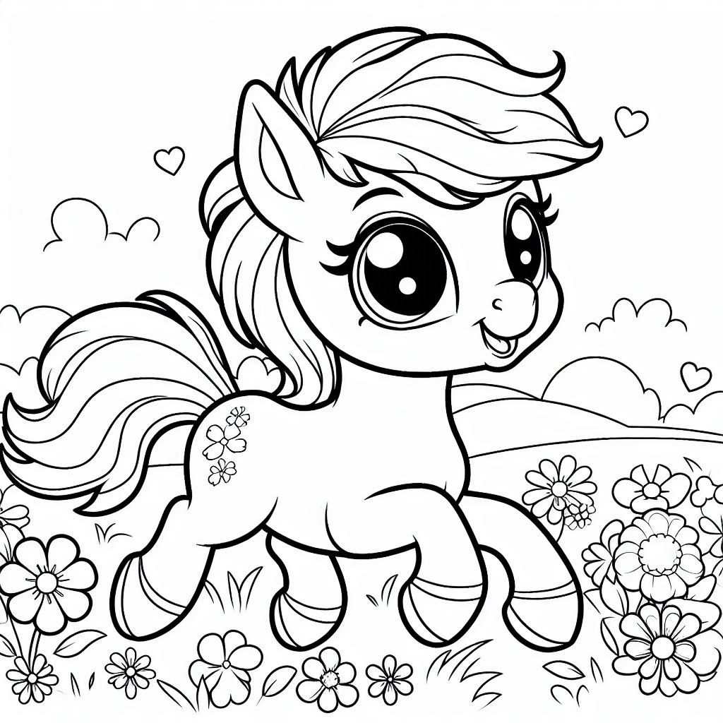 דף צביעה של סוס פוני קטן להדפסה או להורדה בחינם, למחשב או לטלפון (אפשר להדפיס גם מהטלפון)