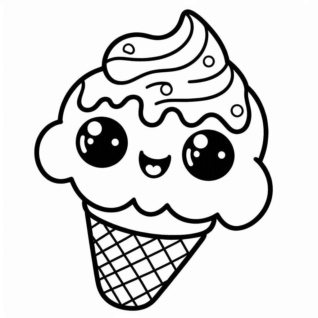 דף צביעה של גלידה חמודה עם עיניים להדפסה או להורדה בחינם, למחשב או לטלפון (אפשר להדפיס גם מהטלפון) ציור של גלידה חמודה עם עיניים לצביעה, איור של גלידה חמודה עם עיניים להדפסה לצביעה לילדים