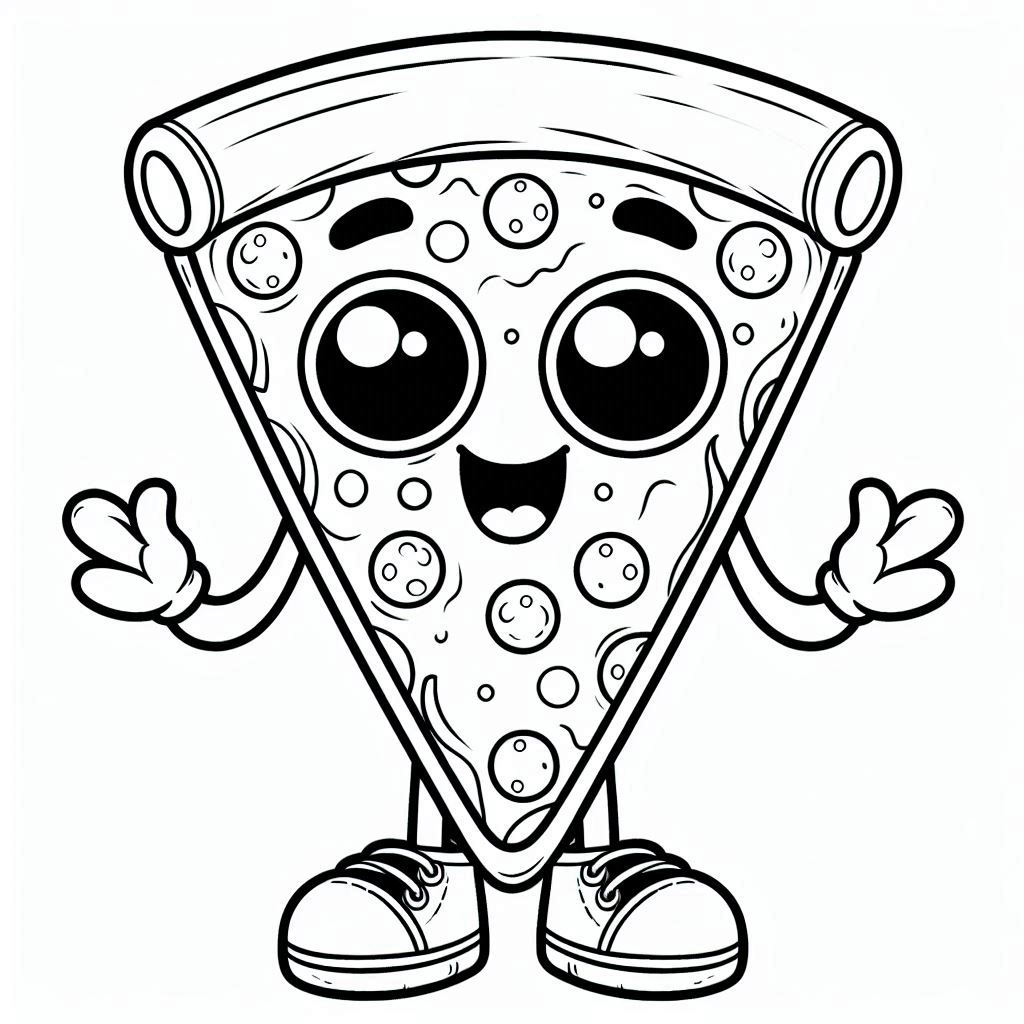 ציור של משולש פיצה חמוד לצביעה, איור של משולש פיצה חמוד להדפסה לצביעה לילדים