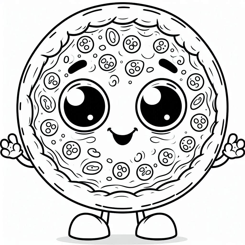 דף צביעה להדפסה או להורדה חינם של פיצה עגולה חמודה