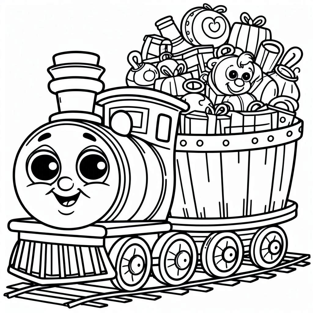 דף רכבת צעצועים חמודה לצביעה , רכבת צעצועים חמודה להדפסה לצביעה, מתאים לדף בגודל A4 להדפסה בחינם