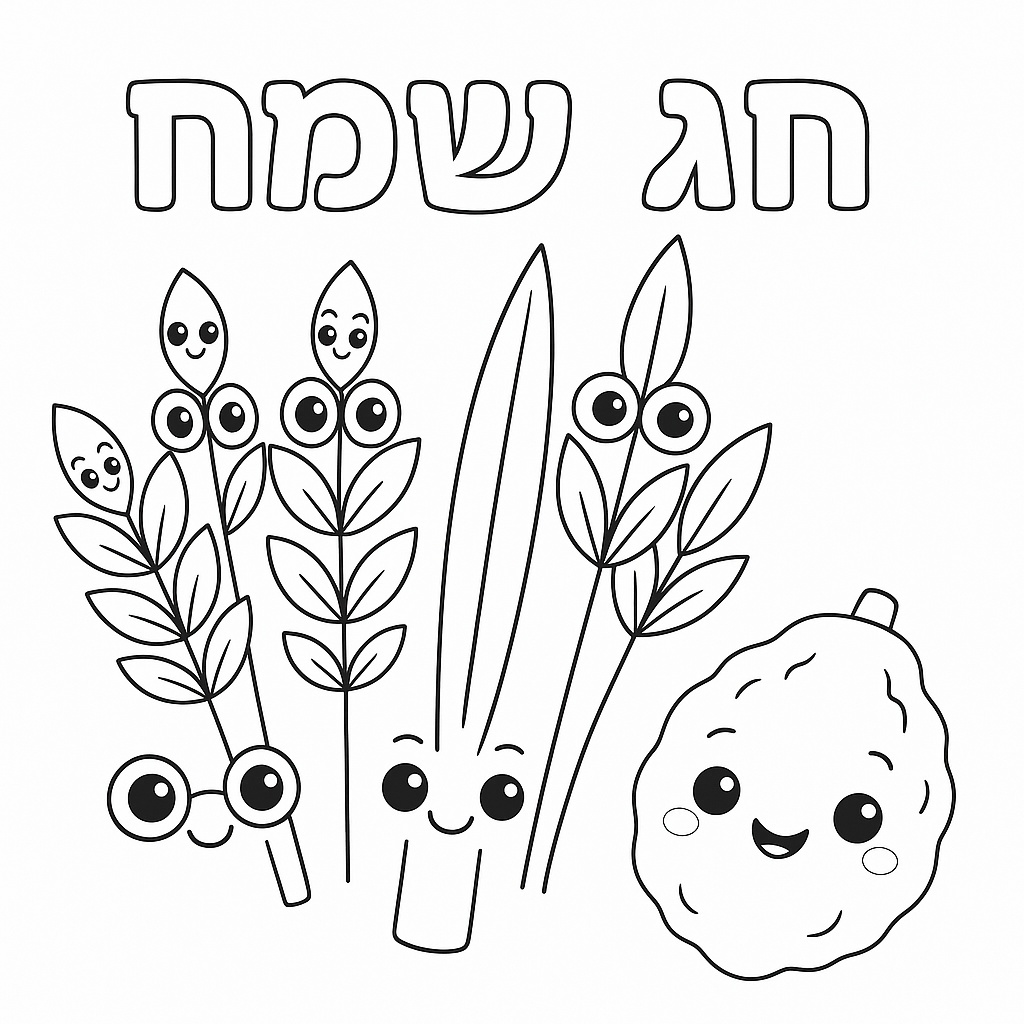 דף צביעה של ארבעת המינים חמודים להדפסה בחינם