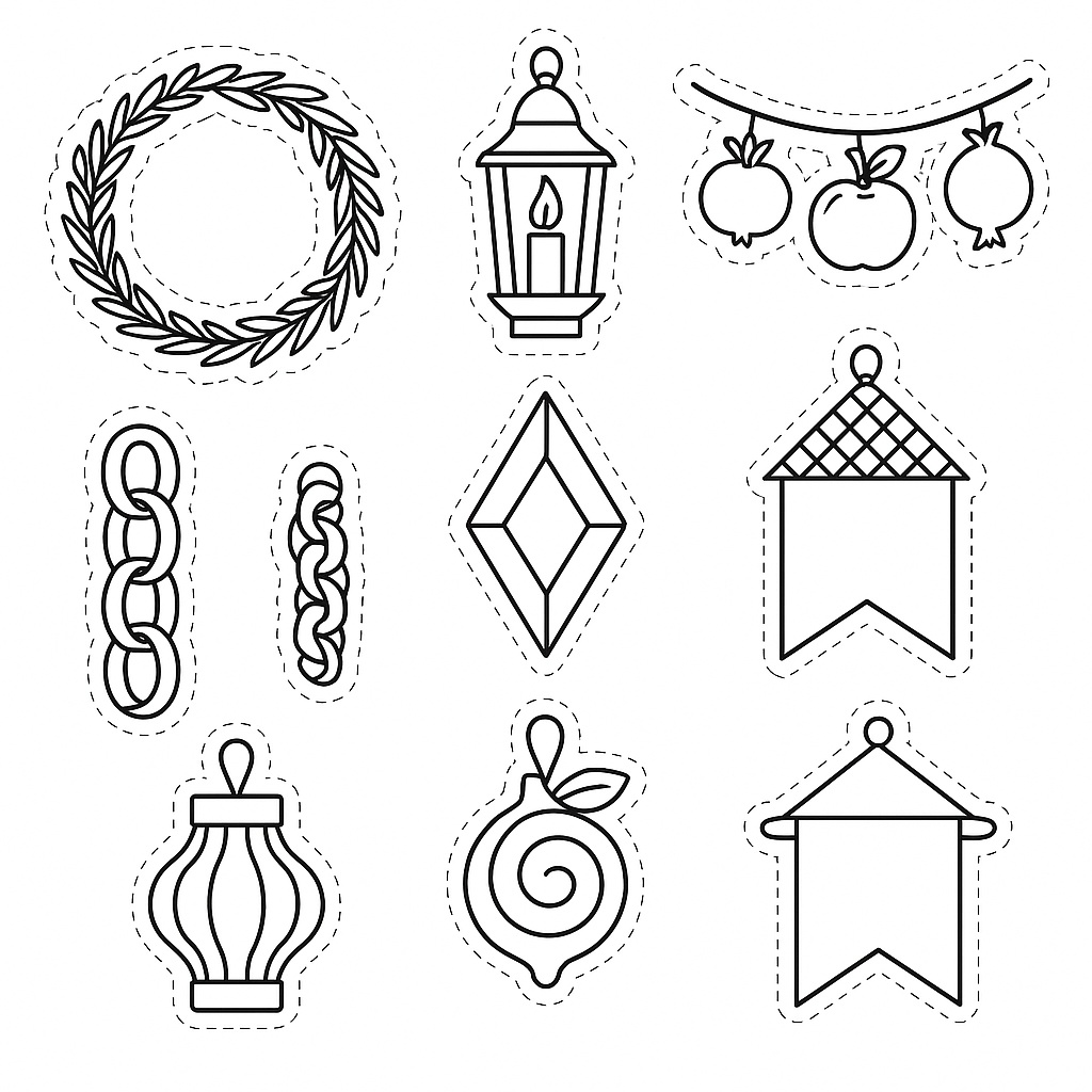 דף צביעה של קישוטים לסוכות לגזירה להדפסה להדפסה בחינם