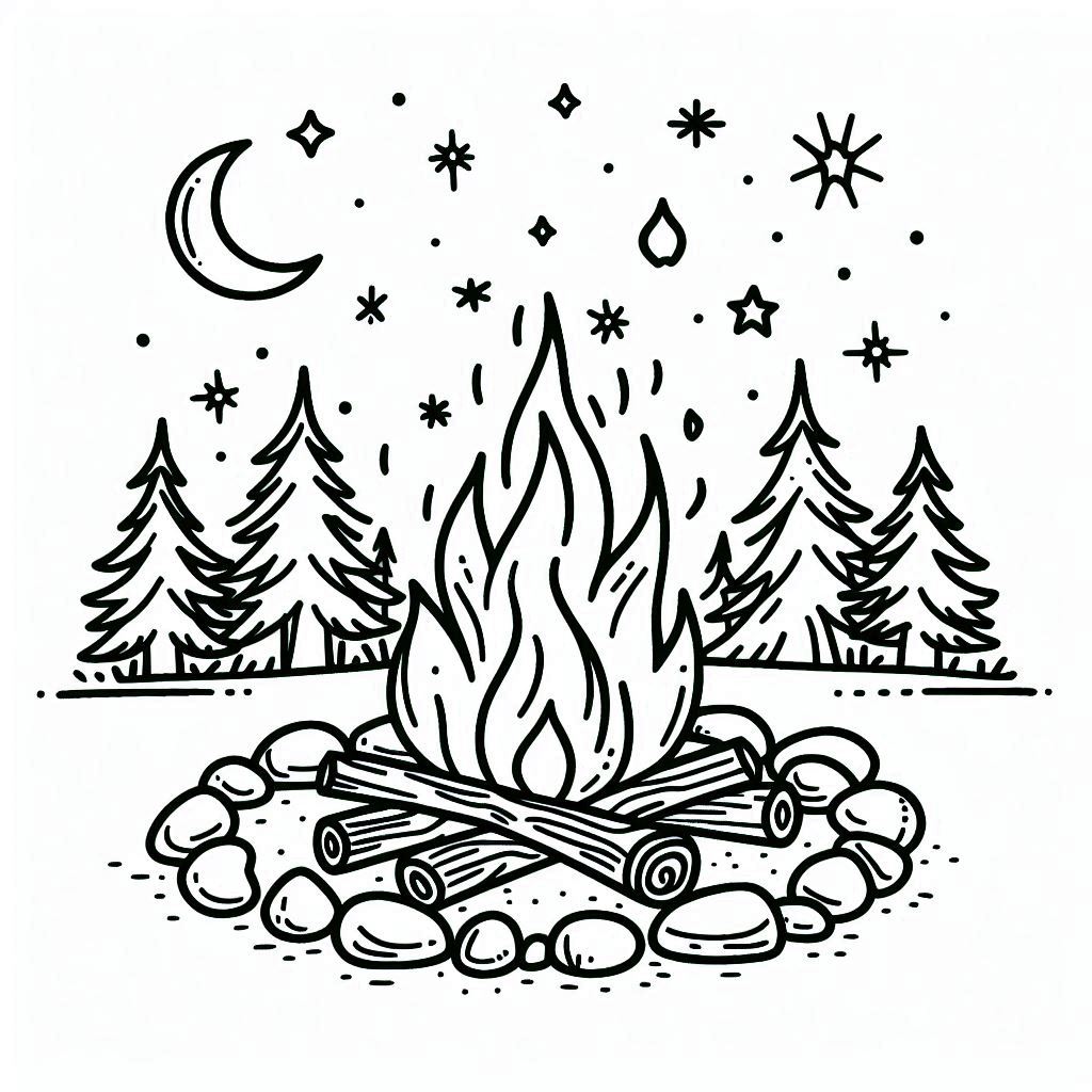 ציור של מדורה לצביעה, איור של מדורה להדפסה לצביעה לילדים