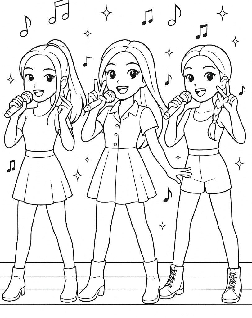 דף צביעה של קיי פופ להדפסה או להורדה בחינם, למחשב או לטלפון (אפשר להדפיס גם מהטלפון)