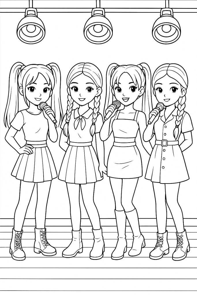 דף צביעה של קיי פופ שרות להדפסה בחינם